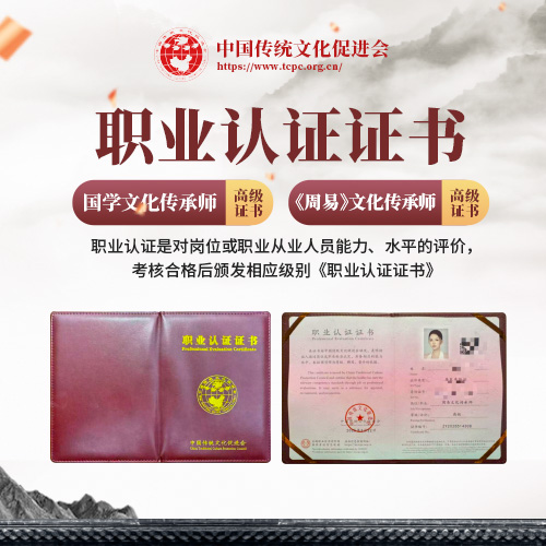 在大力弘扬中华优秀传统文化、推动文化自信自强的国家政策背景下,为加强传统文化专业人才队伍建设,规范从业水准,中国传统文化促进会发起“中华优秀传统文化人才培养工程”,已正式面向社会开展【国学文化传承师】与【周易文化传承师】职业能力认证工作。