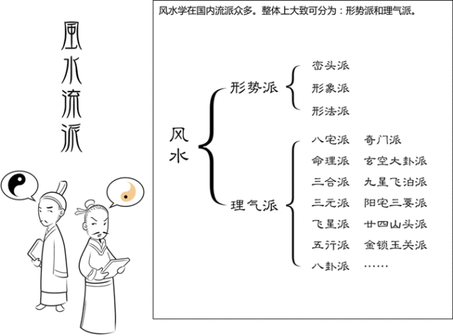 形势派和理气派。它们的理论彼此渗透。学习风水学要对两派的精华兼收幷蓄。去伪存真。不要走入风水学的误区。